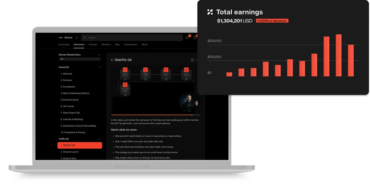 Both. Whether you’re brand new or already have a course, Kourse gives you the structure, tools, and support to build a high-converting system and grow your revenue fast.